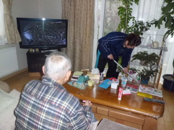 デイサービス「みんなの架け橋」では、音声パソコン、タブレット(アイパッド等)の体験や活用のほか、視覚障害者用安全杖(白杖)での歩行アドバイス、音や触って楽しめるゲーム等、便利な生活用具を揃え、目が見える方も一緒に体験することができます。